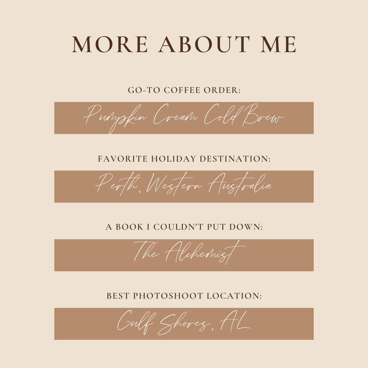 Whether you're a couple in love, a growing family, entrepreneur seeking branding photos, or simply an individual embracing life, I'm here to document your unique story in the most authentic way possible.